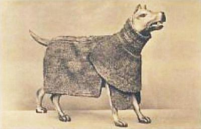 | Keywords: Dog Armour.jpg fact en A German 17th century war dog represented by a statue in protective armour consisting of chain mail and steel helmet Formerly in the Rüstkammer Collection of Wartburg Castle Germany G Reimer Kunsthandbuch für Deutschland published by Königliche Museen zu Berlin 1904 Author 1904 or earlier PD-old Grotesque armour Military working dogs of Germany Statues of dogs |