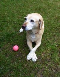 Keywords: dog ball attention paws playful good floppy ear