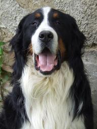 Keywords: dog bernese mountain black and white great animal guard face language