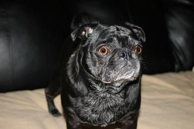 Keywords: dog black pet pug animal canine puppy domestic mammal portrait breed pedigree doggy friend