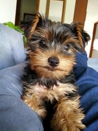Keywords: dog blue chair yorkie hairy