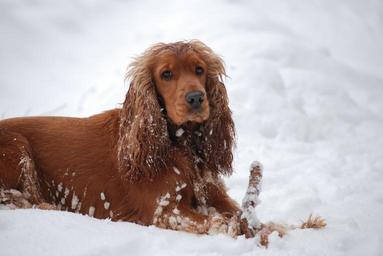 Keywords: dog coocker spaniel animal fun winter snow aport water toy doggy