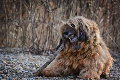 Keywords: dog face head tibetan terrier animal pet portrait cute friendly brown attention small dog wuschelig dog look fur hair floor chew
