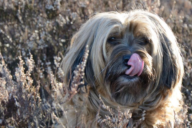 Keywords: dog face portrait head animal tongue lick wildlife photography tibetan terrier nature autumn
