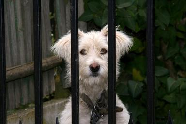 Keywords: dog fence curiosity white pet