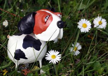 Keywords: dog flowers spring green daisies