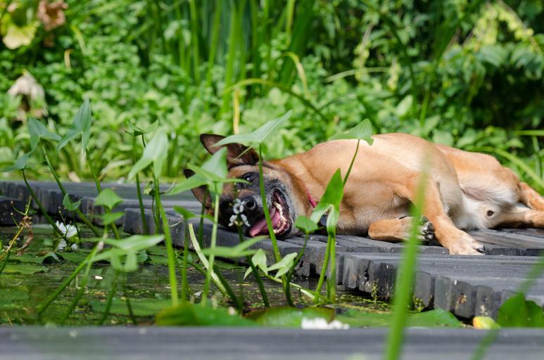 Keywords: dog garden malinois sweet race summer lazing around relax water garden web sunny cooling pet animal