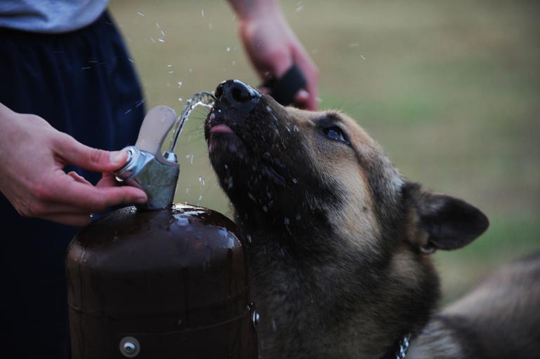Keywords: dog german shepherd drinking fountain canine cute portrait