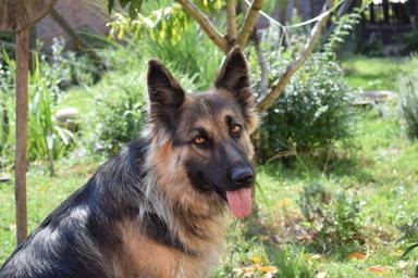 Keywords: dog green beauty german shepherd naturally dogs sunlight light and shadow wood green grass doggy