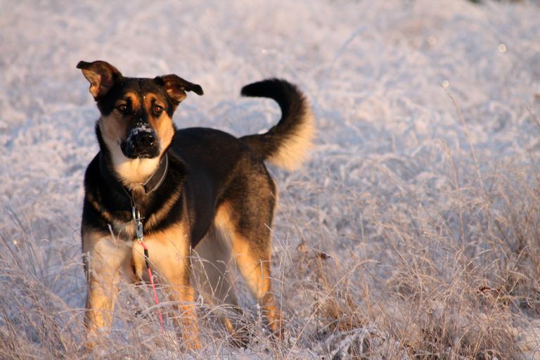 Keywords: dog grown up cute adorable winter snow frost