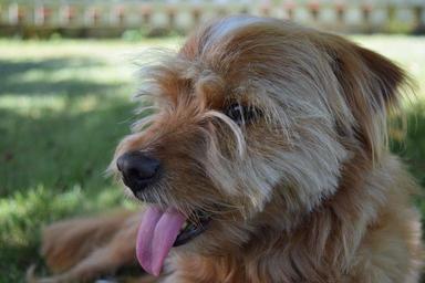 Keywords: dog hybrid pet animal attention small dog summer pant rest break