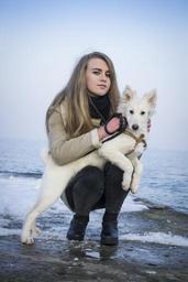 Keywords: dog laika animals pets arctic snow winter girl person puppy