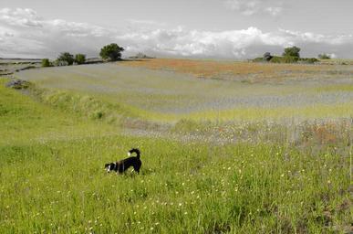 Keywords: dog landscape pet horizon animal prado