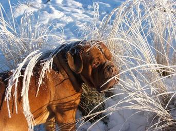 Keywords: dog mastiff pet pets large animal dogs snow cold winter grass