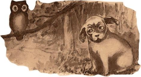 Keywords: dog owl forest woods nature trees halloween vintage fright fear