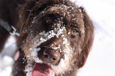 Keywords: dog pet animal snow cute canine winter cold nature fun domestic puppy breed adorable young funny pedigree retriever labrador playful doggy friend frost white