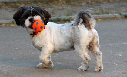 Keywords: dog play ball pet white black cute