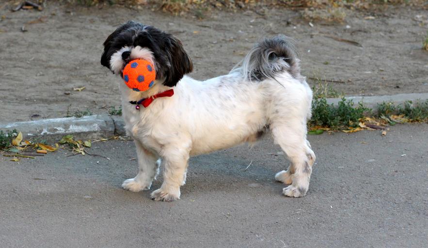 Keywords: dog play ball pet white black cute