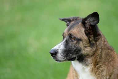Keywords: dog portrait bokeh animal noble hybrid close head eyes meadow attention pride awakened dog eyes