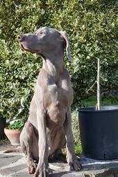 Keywords: dog puppy hound weimaraner eyes tenderness muzzle sweet animal pet nature hair bone animals gray sun