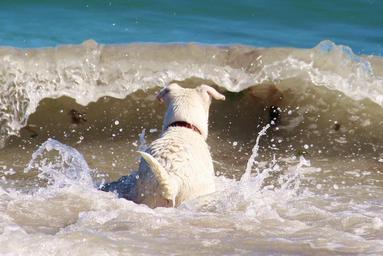 Keywords: dog sea beach wave surf
