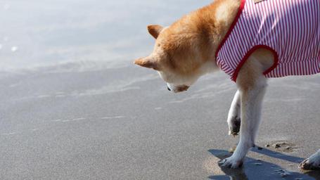Keywords: dog sea shiba inu water beach sun
