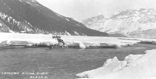 | Keywords: Dog sled team and driver preparing to cross the Nizina River, ca 1912 (THWAITES 366).jpeg check categories 27 October 2016 3 Photograph Creator John E Thwaites Caption on image Crossing Nizina River Alaska PH Coll 247 879<br/>The Nizina River starts at the base of the Nizina glacier in a remote corner of the Wrangell-St Elias National Park and Preserve The Nizina River is called a brown water river so colored because of suspended fine glacial flour Fine glacial flour is a very fine sand/rock/dirt composite that is created as glaciers grind over and through mountains When the glacier melts the flour is what remains The water from the melting glacier picks it up It is so fine and light that it is held suspended in the water rather than settling out The Nizina River starts out as a lake and then flows over a natural dam as it begins its 200-mile trip to the sea It eventually merges with the Copper River Subjects LCTGM Dogsledding--Alaska; Dog teams--Alaska; Nizina River Alaska ; Rivers--Alaska; Wrangell-Saint Elias National Park and Preserve Alaska ; National parks reserves--Alaska Subjects LCSH Sled dogs--Alaska--Nizina River; Mushers--Alaska--Nizina River; Sleds--Alaska--Nizina River depicted place United States--Alaska--Nezina River ca 1912 Institution University of Washington UWASH-THWAITES-source accession number thwaites 366 PD-old-auto-1923 1940 Information field Order Number THW383 Images from the John E Thwaites Photographs of Alaska Collection to check Rivers of Alaska Sled dogs Mushers |