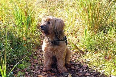 Keywords: dog terrier tibetan terrier pet seat sitting brown fur grass nature wait attention