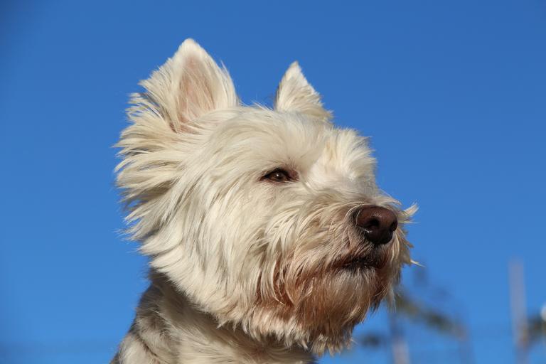 Keywords: dog west white white dog pride little white dog small dog out blue sky animal portrait animal wildlife photography portrait head west highland withe terrier close nature