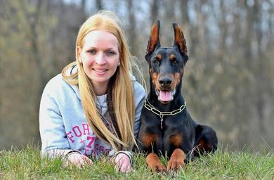 Keywords: dog and woman naturally doberman dog animal species portrait domestic