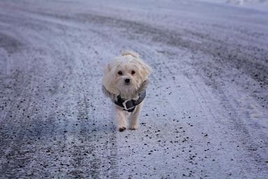 Keywords: dog young dog puppy maltese small sweet cute white in motion out winter away wildlife photography