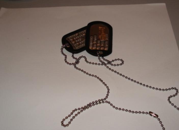 Keywords: Dögcédula 3.JPG Hungarian version of doggy tags own own picture 2008-01-16 Burumbator absolutely Dog tags military identification