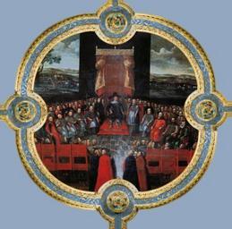 | Keywords: Dolabella Judgment of the Arians.jpg Artwork title Judgment of the Arians in 1638 Sąd nad Arianami w 1638 r Workshop of ca 1640 oil canvas Institution National Museum Kielce Kielce Rocznik Muzeum Narodowego w Kielcach The plafond depicts the parliamentary scene The Judgment of the Polish Brethren in 1638 with portraits of king Władysław IV bishop Zadzik other dignitaries and a group of dissenters The background scene is a vast landscape of a town with a church Raków and the departure of the Polish Brethren members of the Polish Protestant church who taught the equality and brotherhood of all people PD-Art PD-old-100 Tommaso Dolabella Plafonds in the Bishops Palace in Kielce Polish Brethren Sejm of the Polish-Lithuanian Commonwealth |