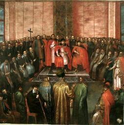 | Keywords: Dolabella Shuysky Czars before Sigismund III.jpg workshop of LangSwitch Stanisław Żółkiewski presenting to the King Sigismund III at the Diet in Warsaw in 1611 captured Shuysky brothers Présentation du tsar Vasili Chouiski par le hetman Stanisław Żółkiewski à la Diète de Varsovie en 1611 Stanisław Żółkiewski przedstawia królowi Zygmuntowi III na sejmie warszawskim w 1611 roku pojmanych braci Szujskich Станіслав Жолкевський п едставляє ко олю Зиґмунту ІІІ на сеймі 1611 оку впійманих ца я Василя Шуйського з двома б атами s 1640 oil canvas cm 340 340 Lviv History Museum accession number object history century 19 transfer Podhorce Castle Pidhirtsi credit line Jan K Ostrowski Jerzy T Petrus Podhorce Dzieje wnętrz pałacowych i galerii obrazów Kraków Zamek Królewski na Wawelu 2001 s 400 ISBN 8390849151 OCLC 51292002 fig 292 http //www spotkania-z-zabytkami pl/aktualnosci/1/151 www spotkania-z-zabytkami pl See below PD-old-100 DEFAULTSORT 1640; Shuysky Czars before Sigismund III Tommaso Dolabella Lviv History Museum Sanguszko Palace Iziaslav Knight's Hall of the Pidhirtsi Castle Sigismund III of Poland Vasily IV of Russia Sejm of the Polish-Lithuanian Commonwealth |