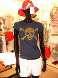 Keywords: doll display dummy dressed up window decoration clothing fashion skull and crossbones
