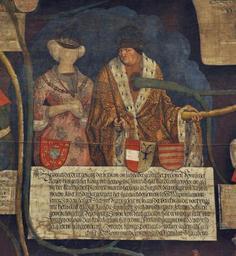 | Keywords: Doll Habsburgerstammbäume detail 2.jpg Wien Kunsthistorisches Museum Hofjagd- und Rüstkammer Neue Burg <br /> Habsburgerstammbäume von Rudolf I bis Philip I dem Schönen; von Konrad Doll aus Freiburg recte Friedberg Tirol 1497; Detail Kaiser Friedrich III mit seiner Ehefrau Eleonore von Portugal own own photograph 1497 Photo Andreas Praefcke Armour in the Collection of Arms and Armour Kunsthistorisches Museum Habsburg family trees Family trees in art Coats of arms in Vienna 1497 paintings Eleanor of Portugal 1434-1467 in miniature Frederick III Holy Roman Emperor Royal coats of arms of Portugal Coats of arms of Austria to be classified Ermine clothing in art Fur fashion in 1497 Photos by User AndreasPraefcke |