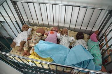 Keywords: dolls bed teaching class lecture interior hospital baby dolls many dolls child pillow room
