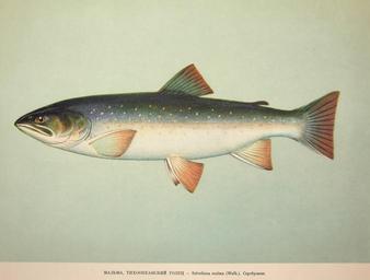| Keywords: Dolly Varden Salvelinus malma 1957.jpg en Plate 55 Salvelinus malma Walb Family Salmonidae In Fishery Resources of the USSR N N Kondakov Artist Editor 1957 NOAA Central Library Call Number SH91 R9 1957 2014-01-27 12 06 25 http //www photolib noaa gov/700s/fish3692 jpg Russian Federal Research Institute of Fishery and Oceanography VNIRO ; Artist N N Kondakov PD-USGov Uploaded with UploadWizard Salvelinus malma | ||||