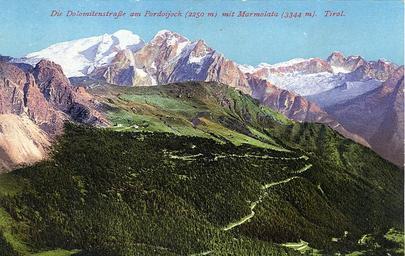 | Keywords: Dolomitenstraße - postcard.jpg en Postcard undated ca 1914 Title Dolomites street near Passo Pordoi 2250m with Marmolata mountains 3344m de Postkarte undatiert ca 1914 Titel Die Dolomitenstraße am Pordoijoch 2250m mit Marmolata 3344m private collection of Wolfgang Sauber Xenophon anonymous 11 10 2008 PD-1923 anonymous-EU Passo Pordoi Marmolada Postcards of Austria-Hungary Postcards of Passo Pordoi Postcards of Trentino-South Tyrol 1914 postcards of Italy 1914 postcards | ||||