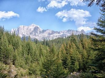 Keywords: dolomites trees mountain forest landscape evergreen