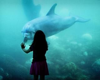Keywords: dolphin friens girl aquarium sea fauna mamals zoo animals underwater through the glass