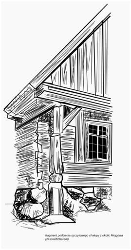 Keywords: Dom mazurski.svg pl fragment podcienia szczytowego chałupy z okolic Mrągowa za Boetticherem own Telewizjamsi 2008 Farmhouses in Mazury