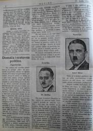 | Keywords: Domaca i svetovna politika (Novine, 1933. VI. 25.).JPG en Domača i svetovna politika Home- and world-policy Novine June 25 1933 The article gloss to the foreign policy and internal affairs of Adolf Hitler and so deem that Hitler's policy is dangerous Formerly in the Novine was a article what aprreciate Hitler hu Domača i svetovna politika Hazai és világ politika Novine 1933 június 25 A cikk kommentálja Adolf Hitler bel- és külpolitikáját és úgy ítéli meg hogy Hitler politikája veszélyes Korábban a Novinéban megjelent egy cikk mely méltatta Hitlert Arhiv pokrajinske in študijske knjižnice Murska Sobota User Doncsecz 2010-03-26 Novine Adolf Hitler Antifascist resistance |