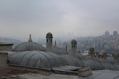 Keywords: dome külliye süleymaniye mosque roof top istanbul turkey cityscape for rainy