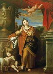| Keywords: Domenichino - Sant'Agnese (Royal Collection).jpg Artwork Creator Domenichino ca 1620 Oil on canvas size cm 212 7 152 4 Institution Royal Collection Windsor object history Possibly acquired by Charles I from the Gonzaga collection Mantua in 1628-32; recovered at the Restoration; seen by Monconys on 20 May 1663 in the Duchess of York's appartments at St James's Palace credit line accession number RCIN 404982 http //www royalcollection org uk/collection/404982/saint-agnes The Royal Collection Windsor Castle <gallery>2872-saint-agnes-domenichino jpg</gallery> PD-old-100 DEFAULTSORT Domenichino; Saint Agnes; Royal Collection Windsor Paintings by Domenichino Baroque paintings in Art in the Royal Collection of the United Kingdom in Windsor Castle Paintings of the Gonzaga Collection Paintings of Saint Agnes of Rome 1620 paintings 1620s oil on canvas paintings in the United Kingdom 1620s paintings from Italy 17th-century oil paintings of standing women at full length 17th-century paintings of Christian saints Agnes Angels with crowns Coronations in art Paintings of Christian saints with putti Paintings of sheep People with sheep in art Putti in the air Women looking up in art |