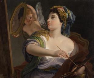 | Keywords: Domenico Corvi - Allegory of Painting - Walters 371011.jpg Walters Art Museum artwork Q18748459 Creator Domenico Corvi This young woman with her palette and brushes is not seriously engaged in painting Contemplating her reflection in a mirror held by a winged cupid she is a personification of the self-conscious beauty that was then the goal of art A mask attached to her headdress with a golden chain symbolizes the potentially misleading view of reality that art can convey even when appearing to imitate nature Corvi's buoyant cheerful forms are close to those of French rococo art of the period Zeri Italian paintings in the Walters Art Gallery 426 536-537 1764 Baroque Oil on canvas Painted surface cm 60 5 73 3 accession number 37 1011 20010 Royal Collections Turin 1764 by commission Don Marcello Massarenti Collection Rome date and mode of acquisition unknown 1897 catalogue no 526 by A R Mengs Henry Walters city Baltimore Walters Art Museum 1931 by bequest Acquired by Henry Walters with the Massarenti Collection 1902 Going for Baroque The Walters Art Gallery Baltimore 1995-1996 place of origin Rome Italy Walters Art Museum license 2D Baroque paintings in the Walters Art Museum Domenico Corvi 1764 1764 paintings Painting palettes in art People with mirrors in art Females with mirrors 18th-century allegorical paintings |