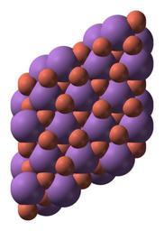 | Keywords: Domeykite-xtal-1965-3D-SF.png Space-filling model of part of the crystal structure of domeykite copper I arsenide Cu<sub>3</sub>As Colour code Copper Cu orange-pink Arsenic As lilac Crystal structure by X-ray diffraction from Z Kristallogr Kristallgeom Kristallphys Kristallchem 1965 122 399-406 Model constructed in http //www crystalmaker com/ CrystalMaker 8 1 Image generated in http //accelrys com/products/discovery-studio/visualization/discovery-studio-visualizer html Accelrys DS Visualizer Own 2009-06-26 Ben Mills Benjah-bmm27 Images by Ben Mills Domeykite |