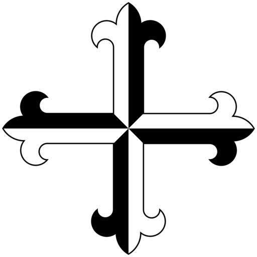 | Keywords: Dominican cross basic.svg Basic version of the cross of the Dominican Order Order of Preachers taken from the coat of arms gyronny of sable and argent a cross flory counterchanged own - Self-made image converted from a version of the following vector PostScript source code <pre> 300 300 translate 1 58 dup scale -300 -300 translate/A 277 8895 420 moveto 265 79687 420 12 09263 0 180 arc 267 78264 437 10157 22 15096 230 53799 50 53799 arcn 318 13895 454 20313 36 27790 180 120 arcn 281 86105 454 20313 36 27790 60 0 arcn 332 21736 437 10157 22 15096 -230 53799 -50 53799 arcn 334 20313 420 12 09263 0 -180 arc 322 1105 420 lineto 322 1105 180 lineto 334 20313 180 12 09263 180 0 arc 332 21736 162 89843 22 15096 50 53799 230 53799 arcn 281 86105 145 79687 36 27790 0 300 arcn 318 13895 145 79687 36 27790 -120 -180 arcn 267 78264 162 89843 22 15096 -50 53799 -230 53799 arcn 265 79687 180 12 09263 180 0 arc 277 8895 180 lineto 277 8895 420 lineto closepath fill def A 0 600 translate -90 rotate A showpage EOF</pre> 2011 AnonMoos For other versions see File Dominican Cross svg and File Crux-Dominicana svg <gallery>Shield of Domincan Order svg Complete coat of arms</gallery> Dominican Cross Images with PostScript source code SVG coat of arms elements - crosses |