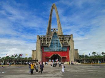 Keywords: dominican republic church basilica building structure sculpture arch sky clouds architecture people faith religion outside landmark