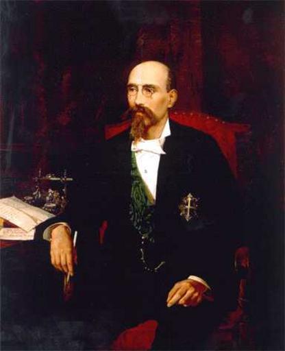 | Keywords: Don José Echegaray y Eizaguirre (Ministerio de Hacienda de España).jpg Retrato del politico y escritor español José Echegaray y Eizaguirre 1832-1916 que también fue ingeniero dramaturgo político y matemático y hermano del comediógrafo Miguel Echegaray Además José Echegaray fue ingeniero de Caminos y economista y fue ministro de Fomento entre 1869 y 1872 y luuego ministro de Hacienda entre 1872-1873 y 1874 destacando entre sus actuaciones la fundación del Banco Nacional de España En 1876 se retiró de la política aunque volvió a ser nombrado ministro de Hacienda en 1905 En 1904 se le concedió el Premio Nobel de Literatura que compartió con Federico Mistral y en 1911 el rey Alfonso XIII le concedió el Toisón de Oro 1881 Oil on canvas cm 126 102 Institution Real Casa de la Aduana de Madrid http //serviciosweb meh es/apps/museo/Pintura3/Carreño htm http //serviciosweb meh es/apps/museo/Pintura3/Carreño htm PD-old-100 other versions José Echegaray y Eizaguirre 19th-century portrait paintings in the Real Casa de la Aduana Francisco Díaz Carreño 1881 portrait paintings Male 19th-century oil portraits of sitting men at three-quarter length 1881 Portrait paintings of men sitting in armchairs 1881 Uploaded with UploadWizard |
